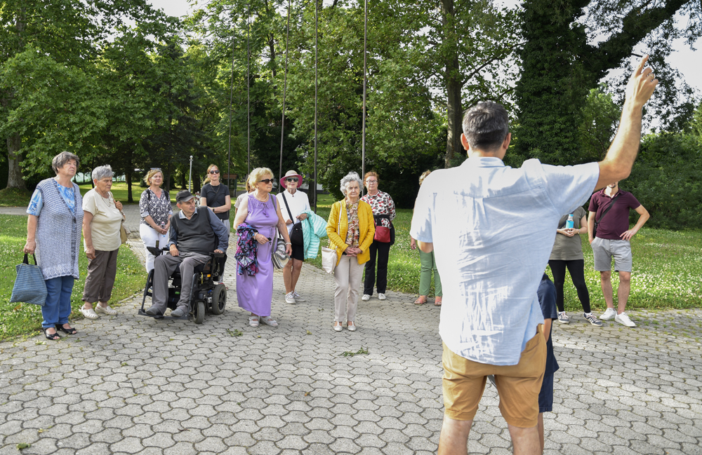 A program következő elemeként várostörténeti sétára indulhattak a vállalkozókedvűek. Dr. Huszár Mihály főmuzeológus vezetésével – a villától indulva és a galériához visszaérkezve – a Sportcsarnok, a Béke park, a Künzelsau-tér, a Rákóczi utca nyugati oldala, valamint a Kossuth utca egykori épületeiről, lakóiról és a ma is álló középületek történetéről ismerhettek meg érdekességeket a résztvevők.
