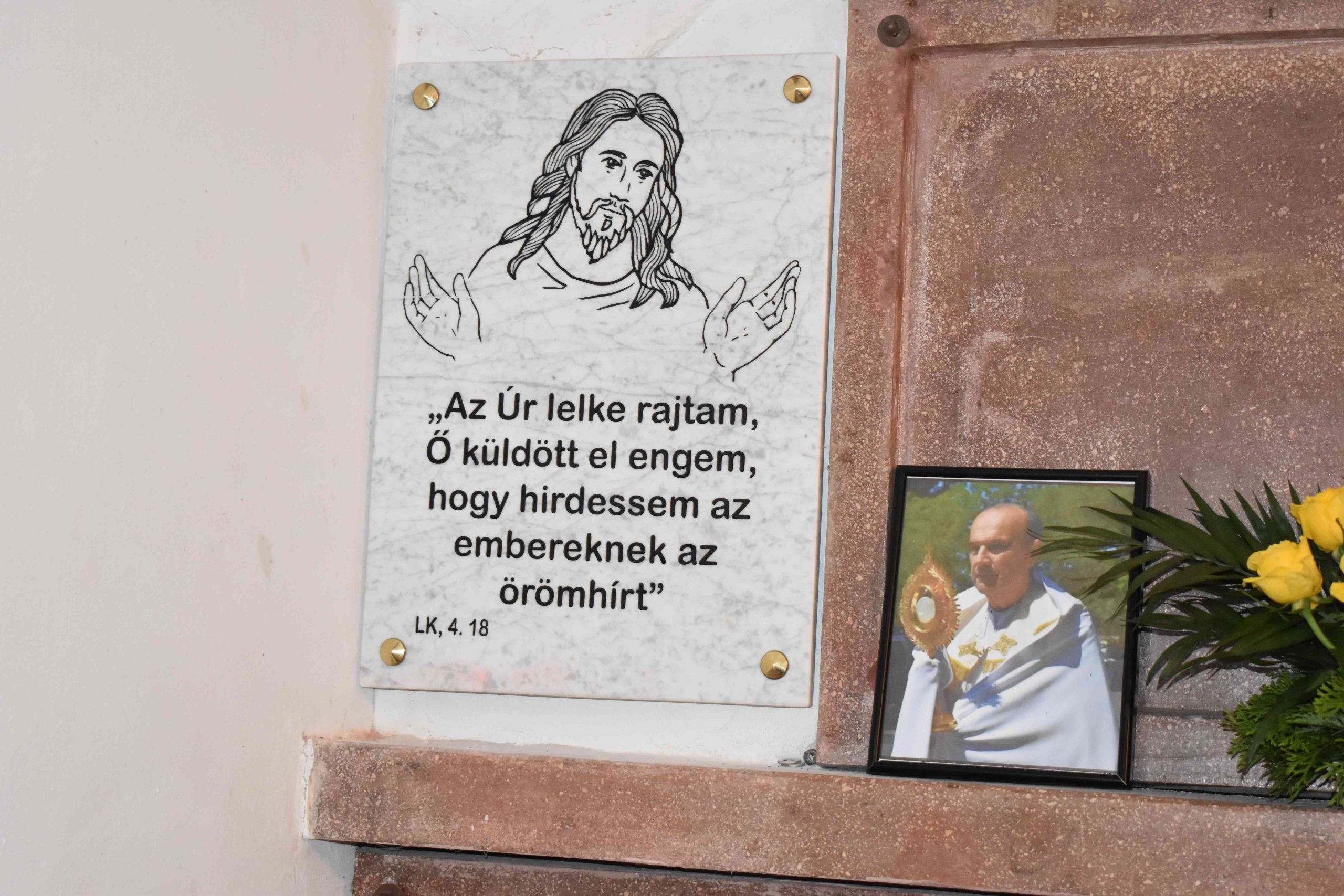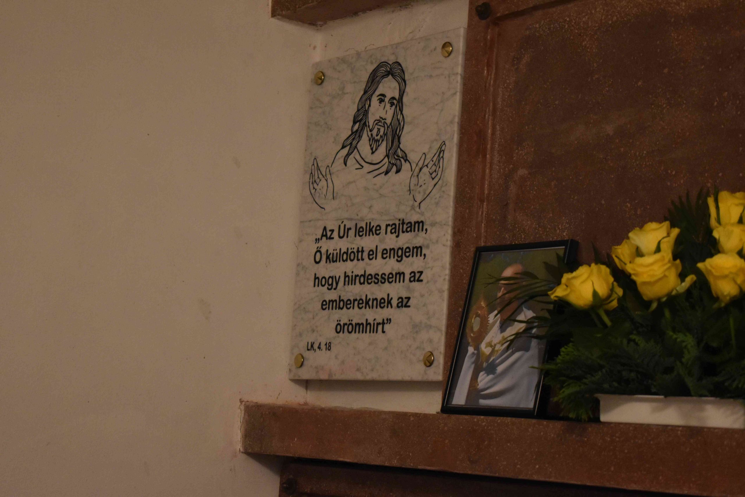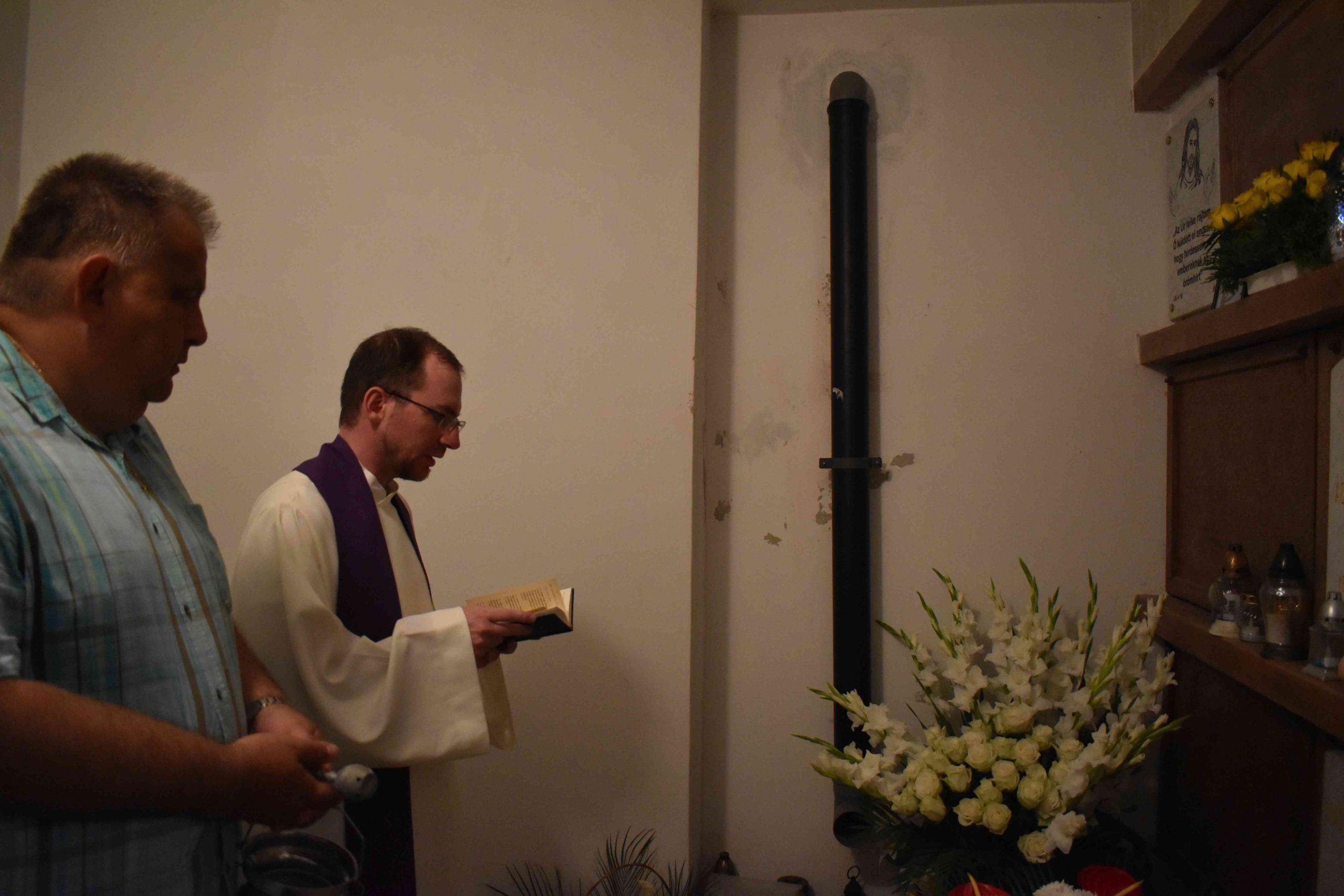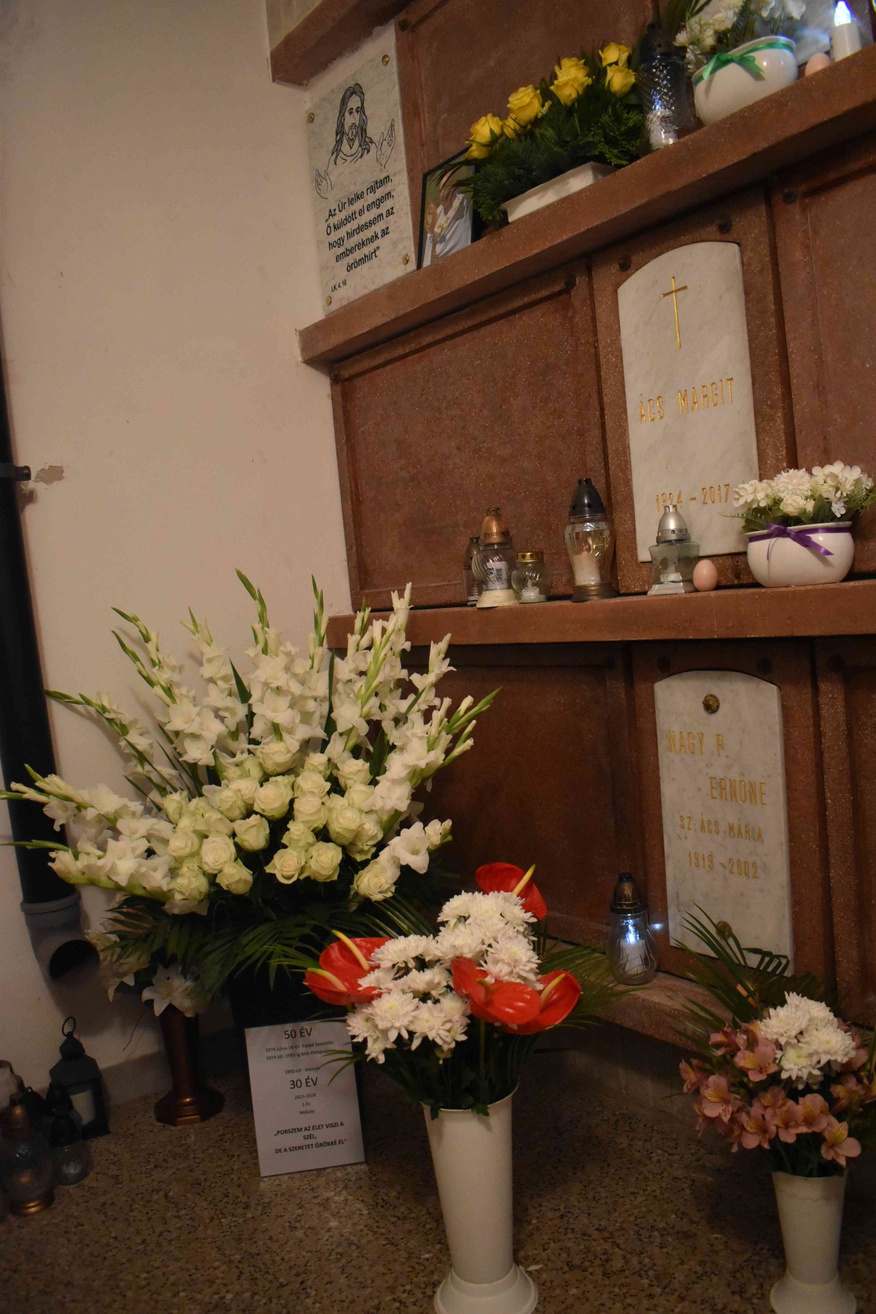 Ferenc atya a jelenlévő hívekkel együtt imádkozott az elhunyt lelkipásztor lelki üdvéért, a marcali egyházközség pedig 50 szál fehér rózsából álló „virág-csokorral” fejezte ki tiszteletét.