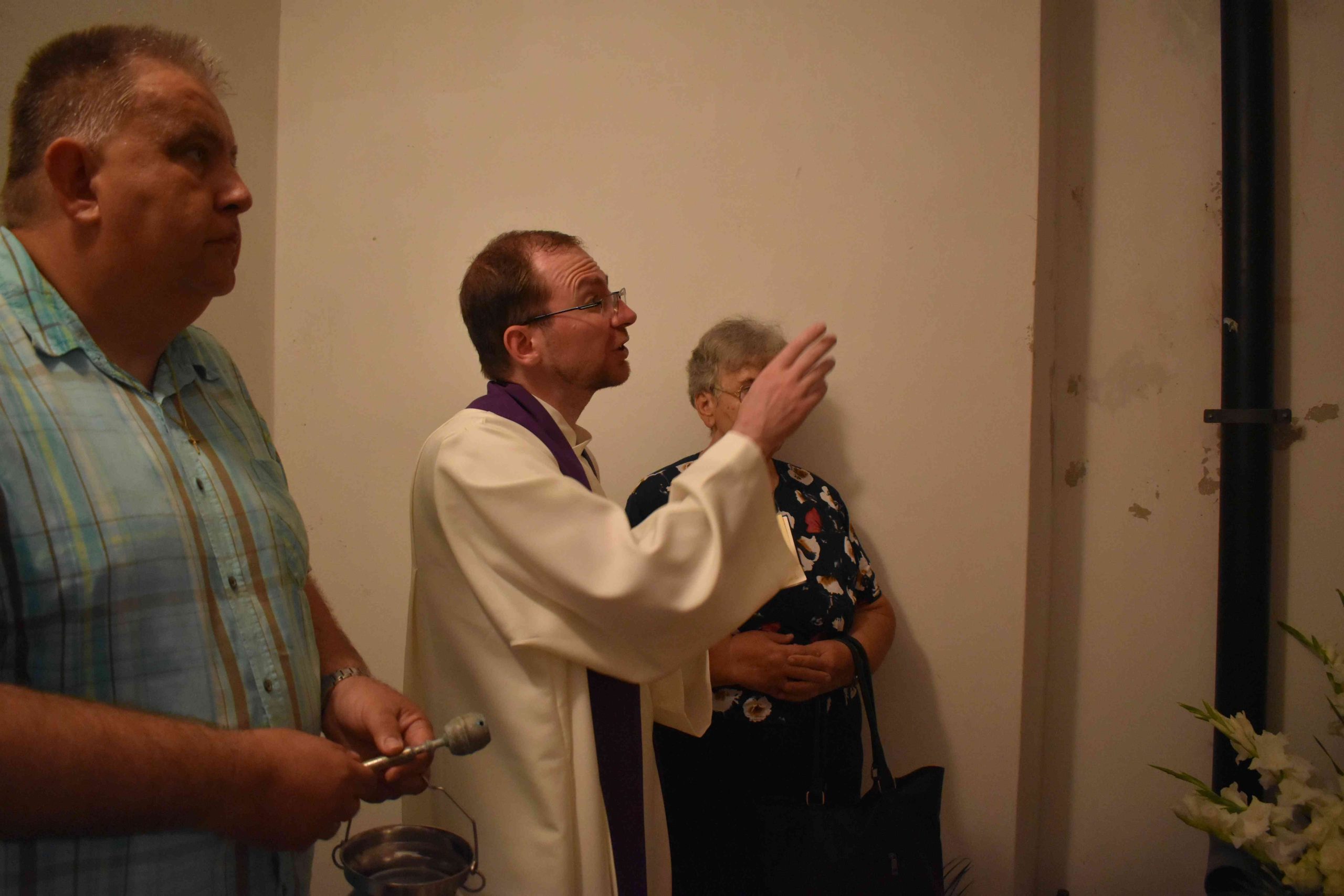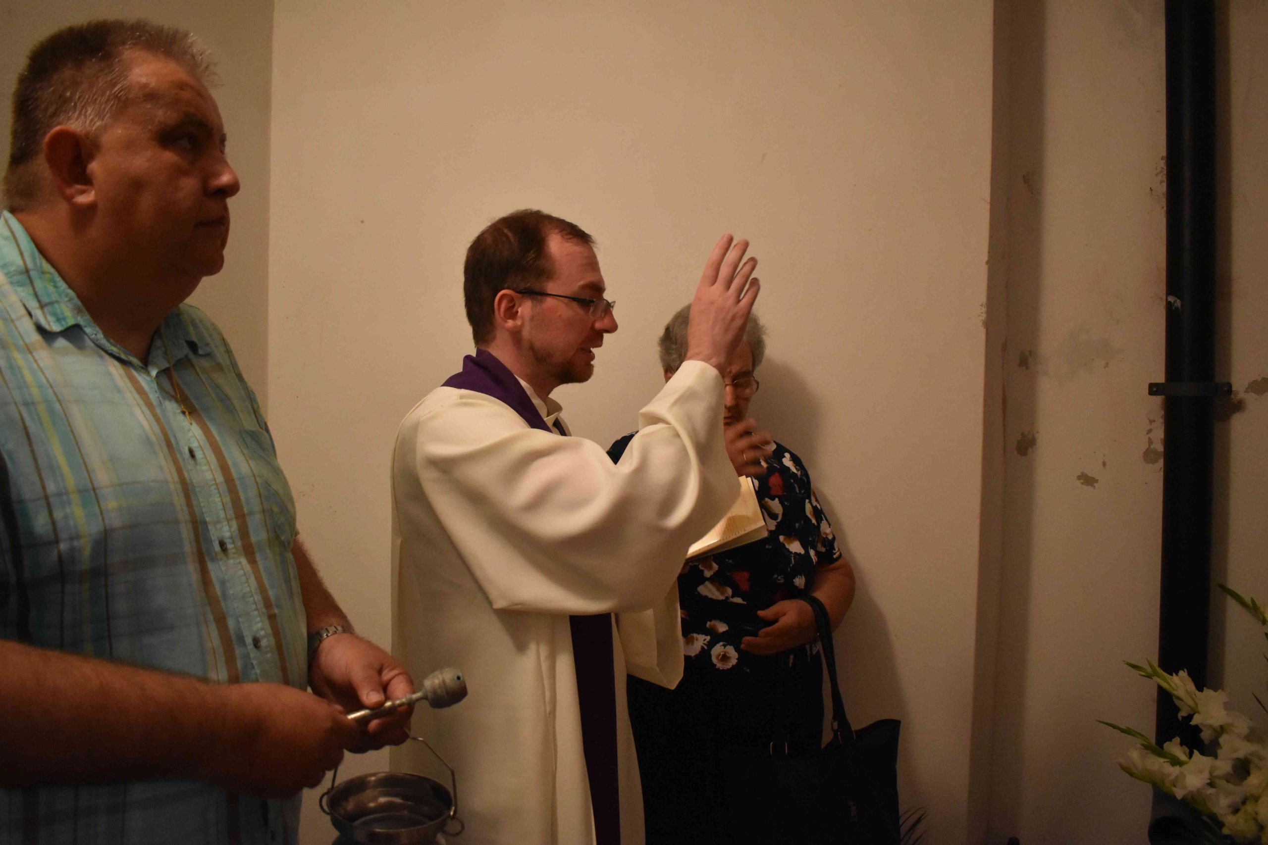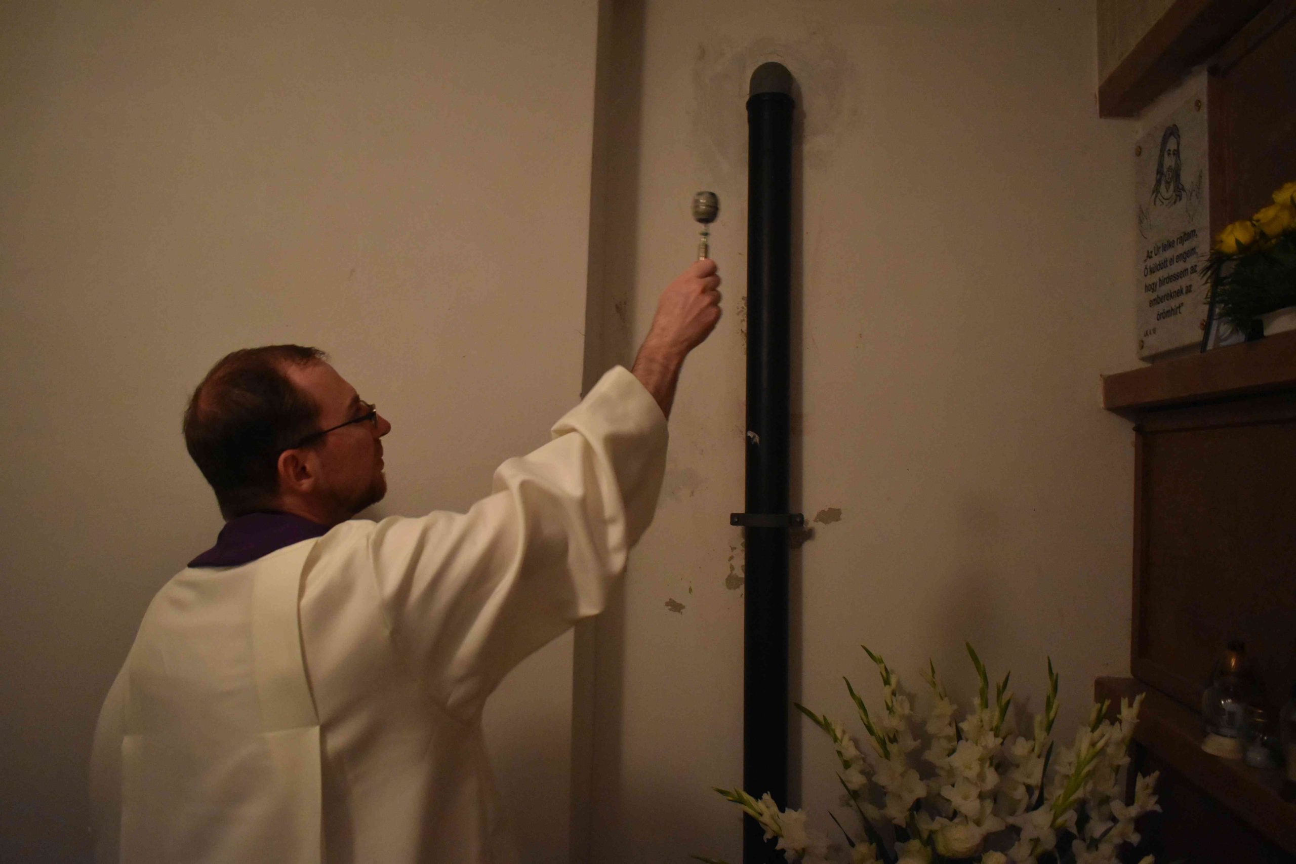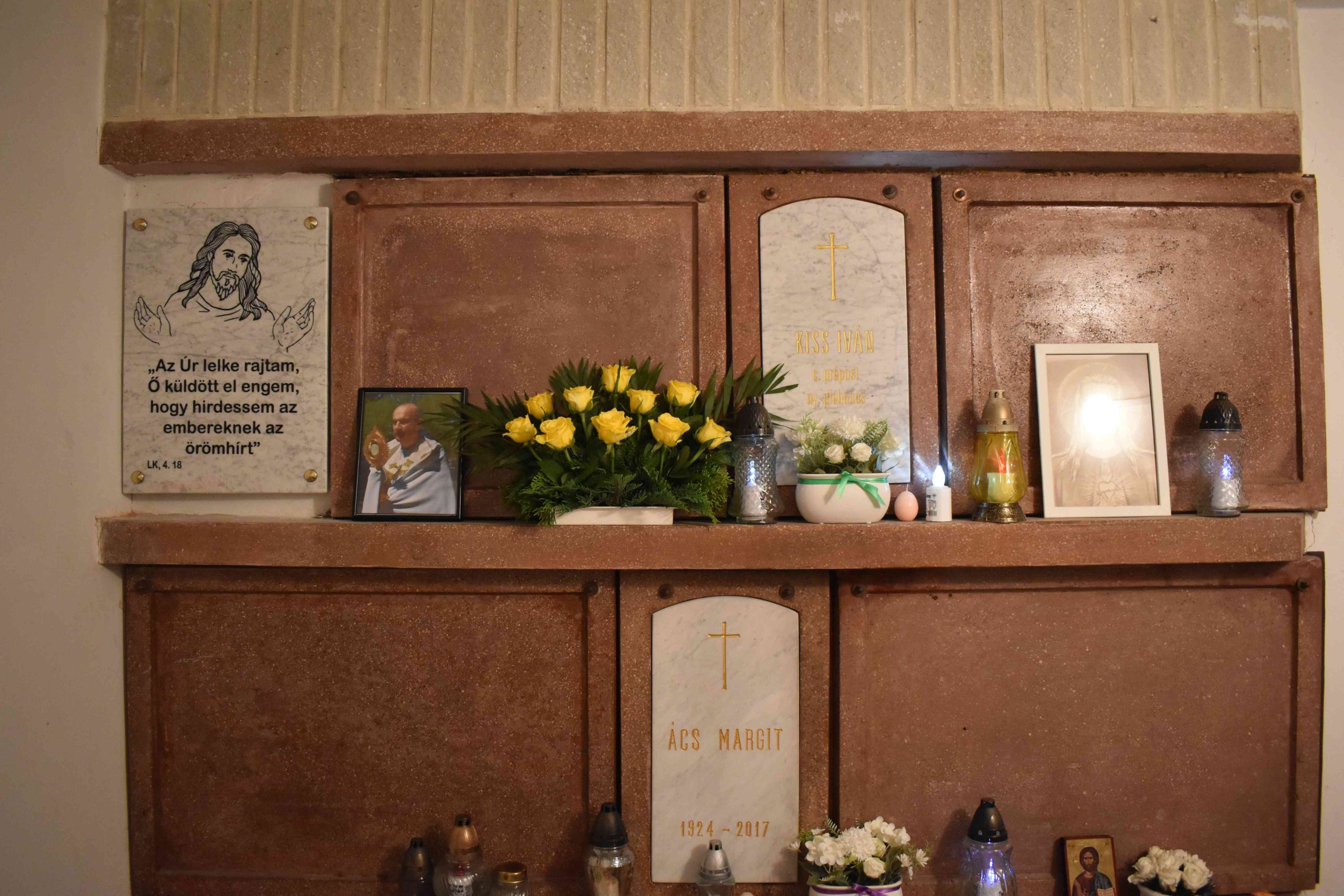 Ferenc atya a jelenlévő hívekkel együtt imádkozott az elhunyt lelkipásztor lelki üdvéért, a marcali egyházközség pedig 50 szál fehér rózsából álló „virág-csokorral” fejezte ki tiszteletét.