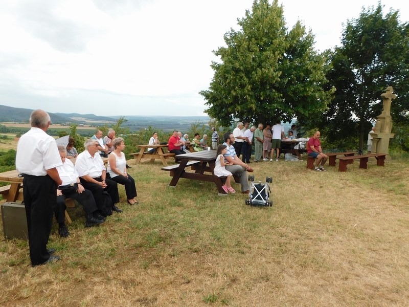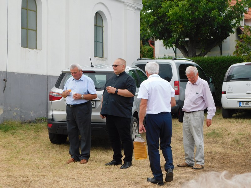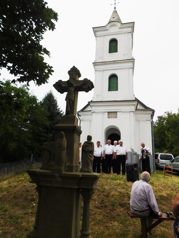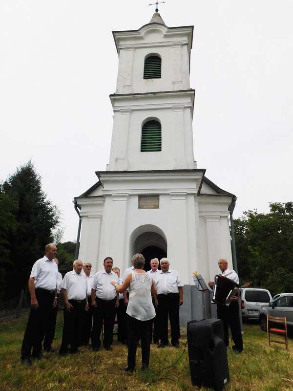A hagyományos szentmisét a Marcali Bajtársi Dalárda műsora követte, ahol bordalokkal, vidám katonadalokkal idéztük fel a régi szőlőhegyi búcsúk hangulatát, majd a helyi borok kóstolásával, egy kis szeretetlakomával zártuk a jó hangulatú rendezvényt.