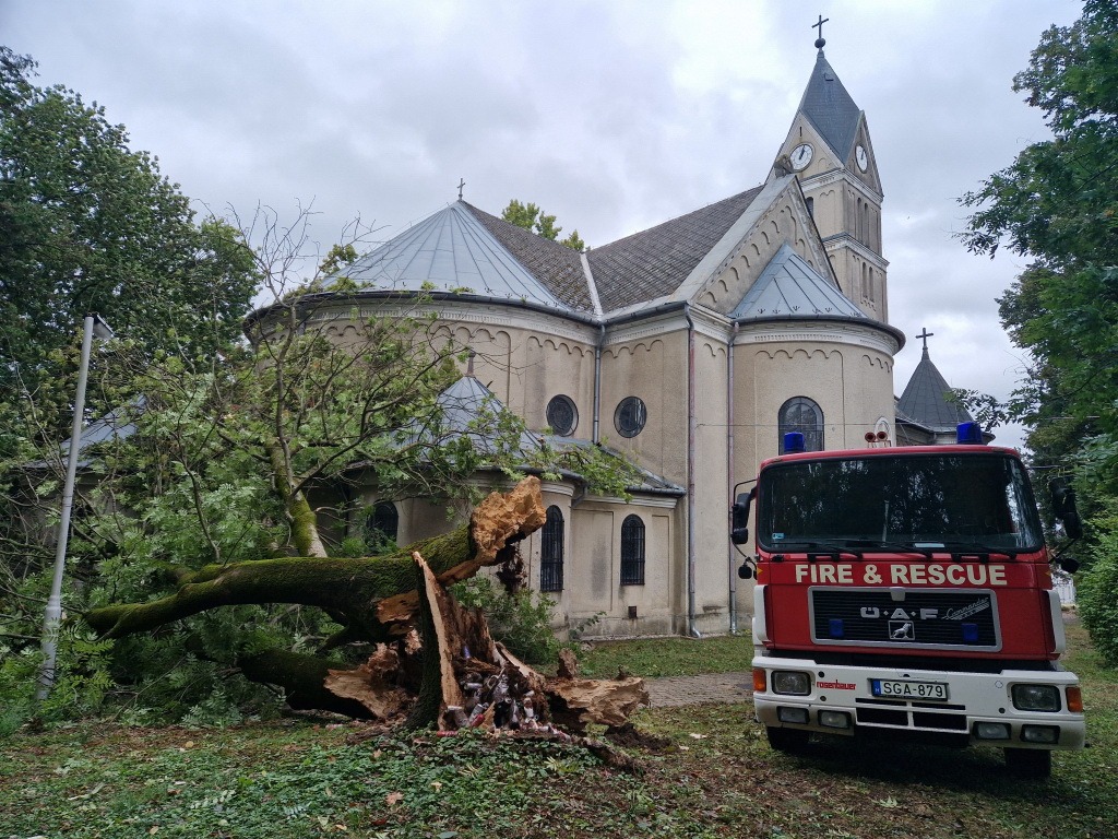 Egy 25 méter magas fa dőlt rá a kaposvári Hősök templomának sekrestyéjére, az Agg József sétányon. A Somogy Mentőcsoport tagszervezete, a KÖTÉL Egyesület gondoskodott emelőkosár segítségével a fa feldarabolásáról, további károkozás nélkül.