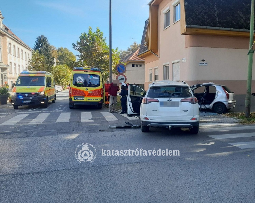 Nem sokkal később a vármegyeszékhely Szigetvári és Táncsics utcai kereszteződésében is két személyautó karambolozott. A műszaki mentést a kaposvári hivatásos tűzoltók végezték, a mentők az egyik autó vezetőjét kórházba szállították.