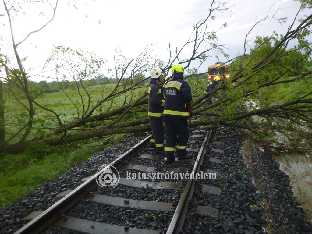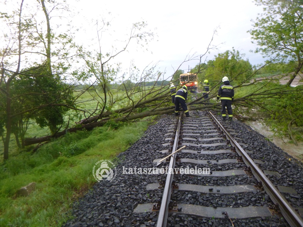 Öreglakon két fa dőlt a sínekre, amelyek akadályozták a vasúti közlekedés. A marcali hivatásos tűzoltók gyalogosan közelítették meg a helyszínt és rövid idő alatt motorfűrésszel eltávolították a fákat a vonat útjából.