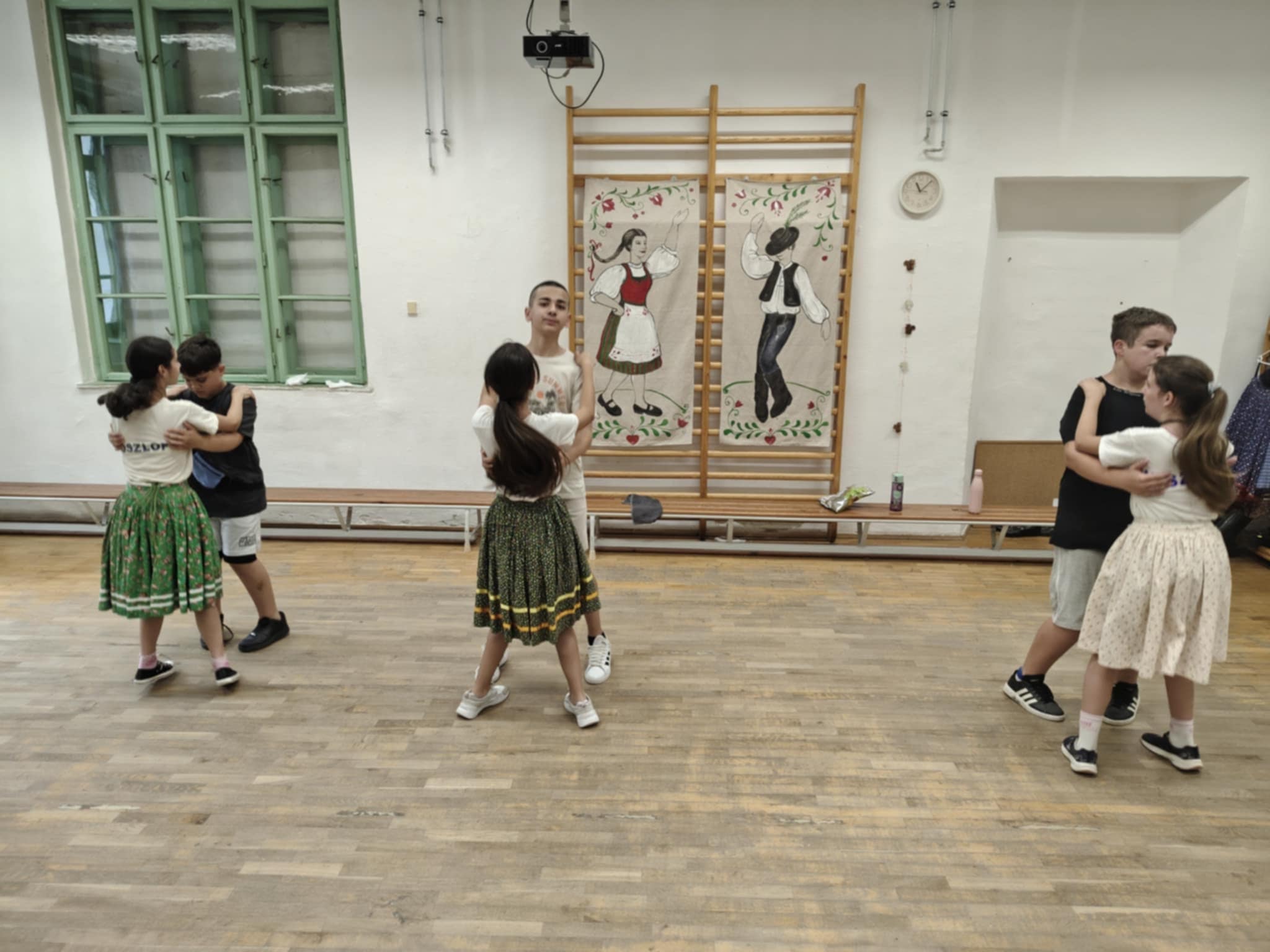 Az idei néptánctáborban a gyerekek a Dél-Alföld gazdag tánc-, ének- és szokáshagyományával ismerkedtek meg. A hetet családias, vidám hangulat, sok nevetés és kitartó munka jellemezte. Emellett a csákányi falunapra való felkészülés is fontos szerepet kapott, így az új anyag elsajátítása mellett a fellépésre is nagy lelkesedéssel készültek. A finom ebéd és fagyizás után, a játszótéren pihenve, nevetve, játszadozva töltődtek fel a gyerekek délutáni tánchoz. A tartalmas, élményekkel teli hét minden résztvevő számára emlékezetes marad — ezek a pillanatok biztosan sokáig elkísérik őket.
