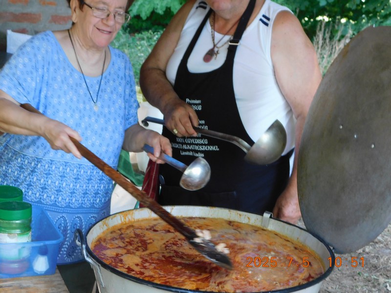 Bognár  György főszervező, mesterszakács  és  segítői hozzákezdtek a  finom  babgulyás  elkészítéséhez.