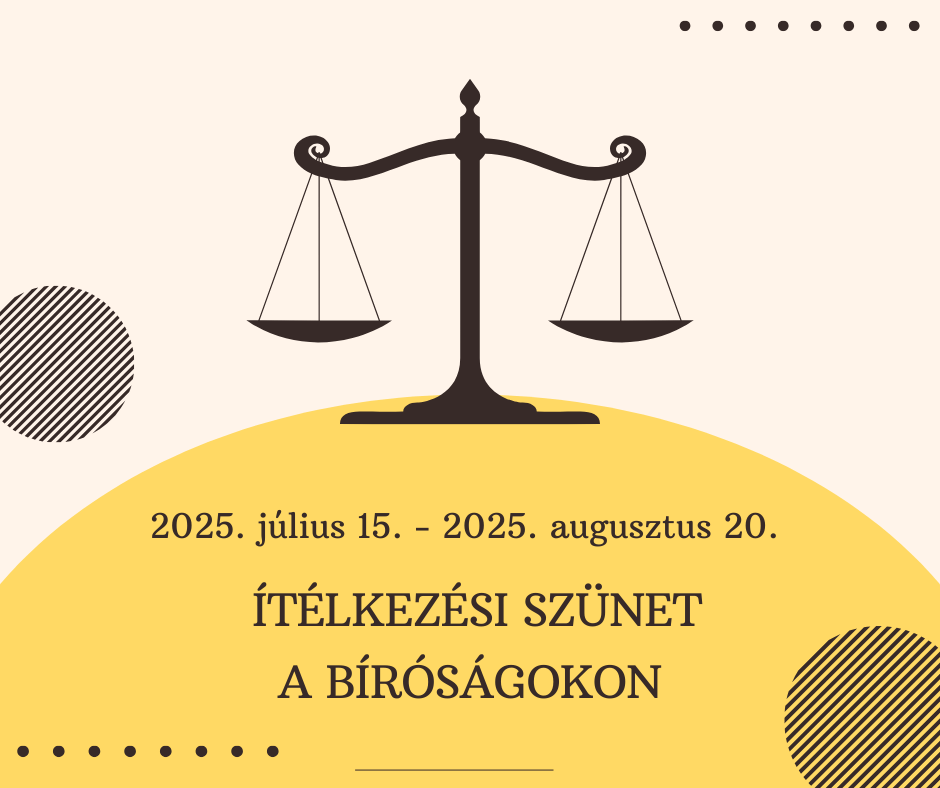 2025. július 15. napjával (kedd) a bíróságokon megkezdődik az egy hónapos ítélkezési szünet, amely 2025. augusztus 20. napjáig (szerda) tart. A bíróságok augusztus 21-től tárgyalnak ismét rendszeresen.
