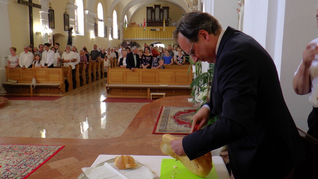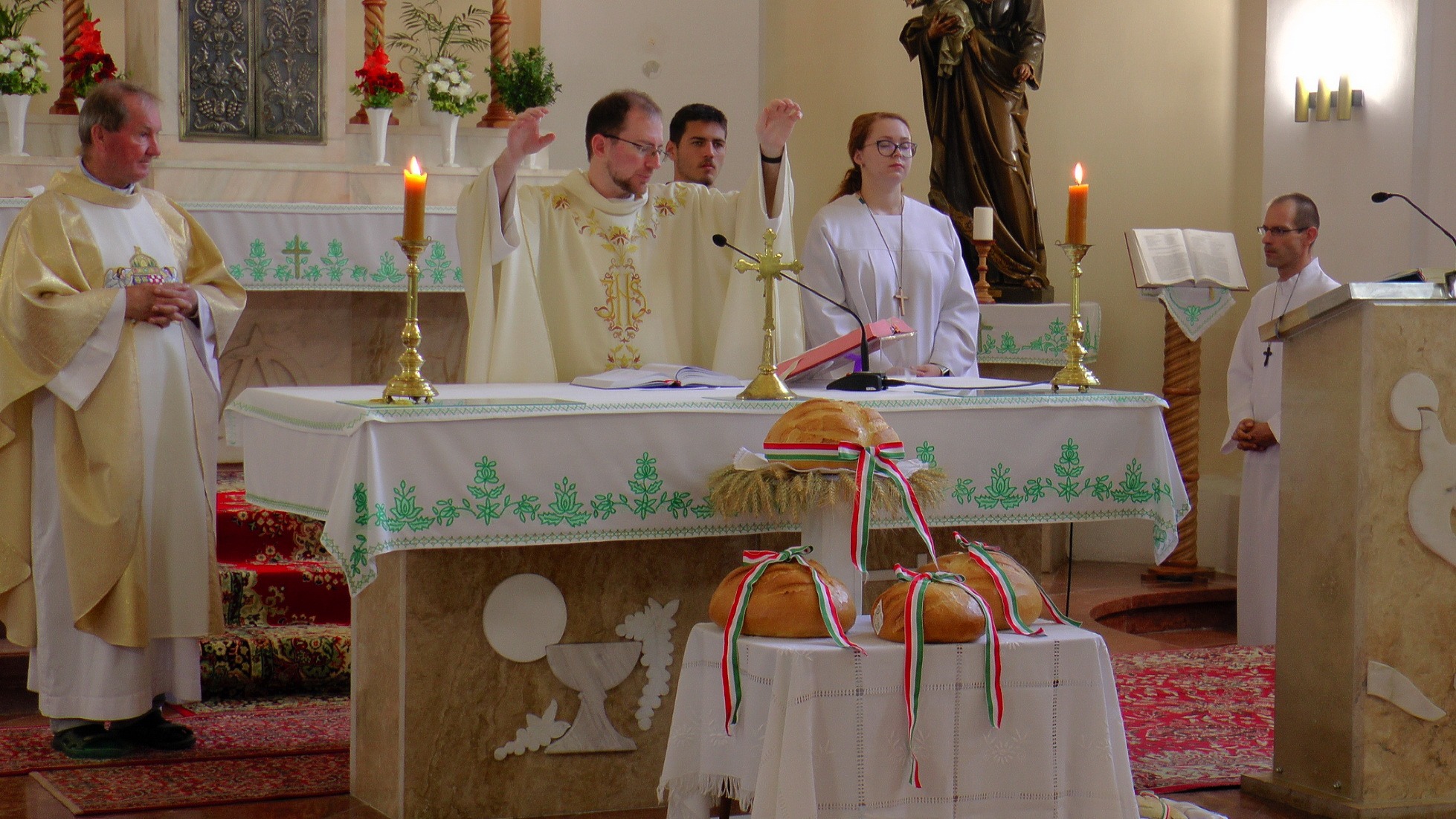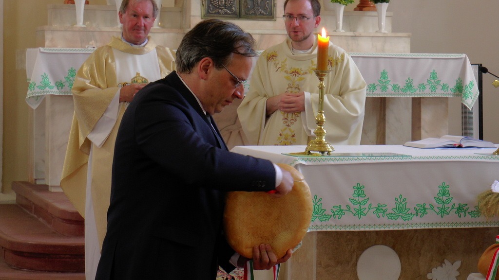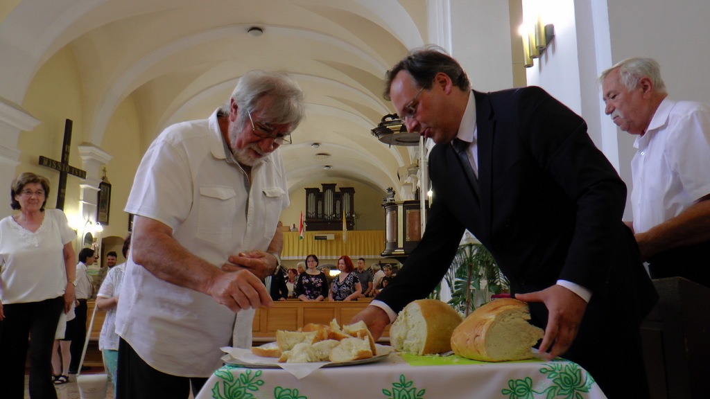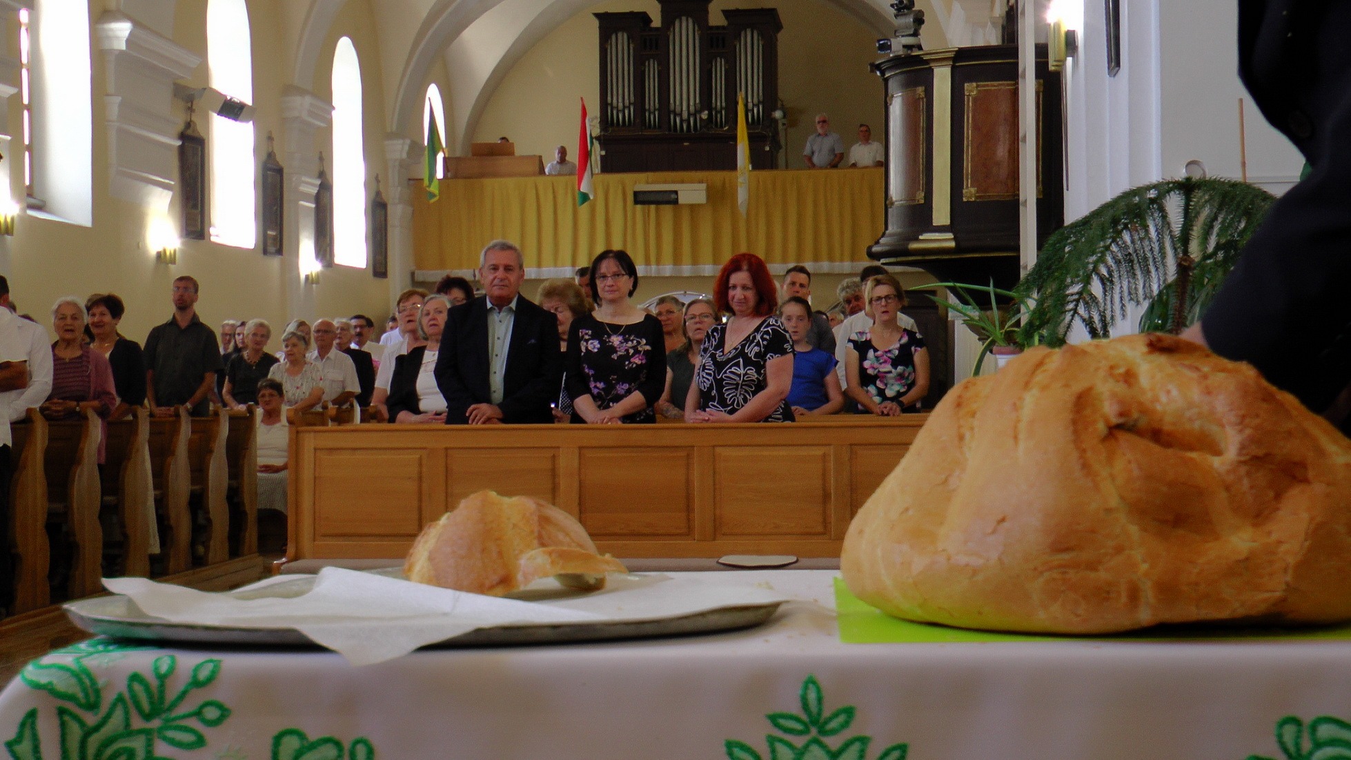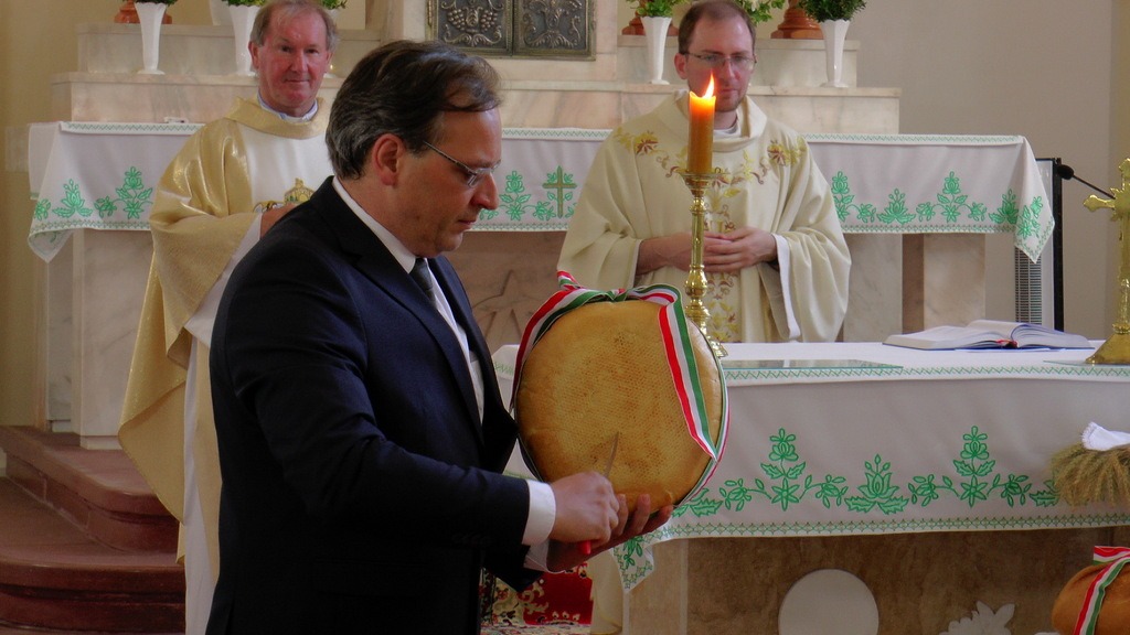 A szertartás legemelkedettebb pillanata az új kenyér megszentelése volt. A Magyarok Kenyere, amely a nemzeti összetartozás szimbólumává vált, idén is helyi összefogásból született meg. A ropogós héjú, illatos kenyeret a neves helyi Takács Sütöde készítette el, a lisztet pedig a szomszédos kéthelyi Gazdakör ajánlotta fel. Ez a gesztus tökéletesen szimbolizálja a gazdák áldozatos munkáját és a közösségek közötti szoros köteléket, amely nélkül az ünnepi asztalra sem kerülhetne kenyér. A kenyeret megszegte, Bereczk Balázs polgármester.