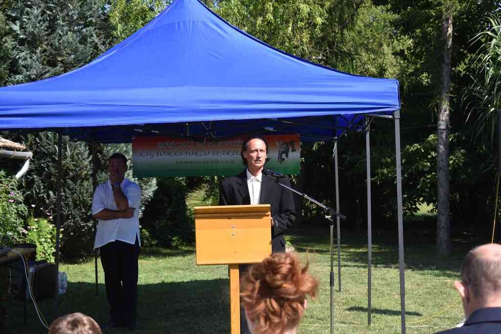 A rendezvény az emlékműnél a Himnusz eléneklésével kezdődött, ahol Szaka Zsolt, az Ipartestület elnöke köszöntötte a megjelenteket és ismertette a programot. Ezt követően Máthé Zsolt hazafias énekeket adott elő, miközben Tóth Eszter Ágnes elszavalta Reményik Sándor: Mindennapi kenyér című versét. Majd pedig dr. Pozsonyi Márk önkormányzati képviselő mondott beszédet, aki az ünnep fontosságát, a közösség erejét, a hagyományok tiszteletét és az egymásra figyelés fontosságát hangsúlyozta felszólalásában.