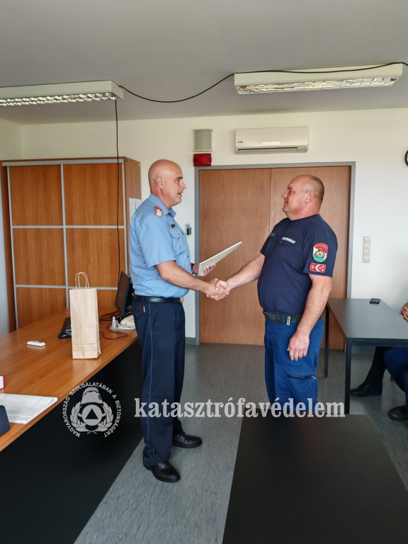 Krám István tűzoltó ezredes a Somogy Vármegyei Katasztrófavédelmi Igazgatóság igazgatója BM alkalmazásban eltöltött évek után elismerésben és jutalomban részesítette 15 év szolgálat után Csányi Krisztina tűzoltó századost, Czár Ferenc tűzoltó őrmestert és Matuz Norbert tűzoltó törzsőrmestert.