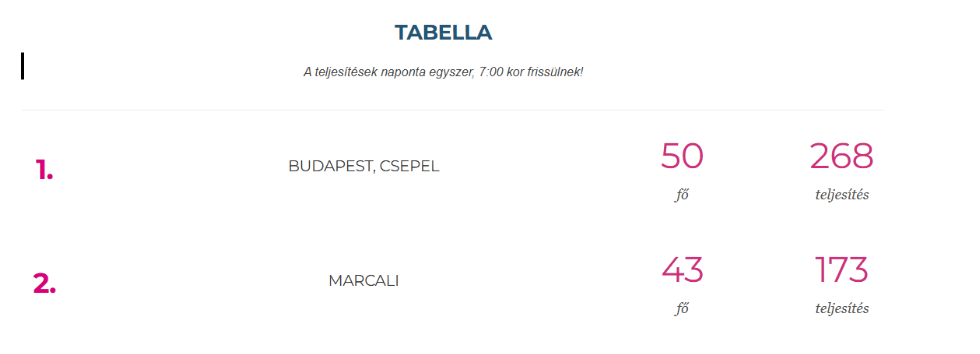 21 napos kihívás, Marcali jelenleg a 2. helyen áll
