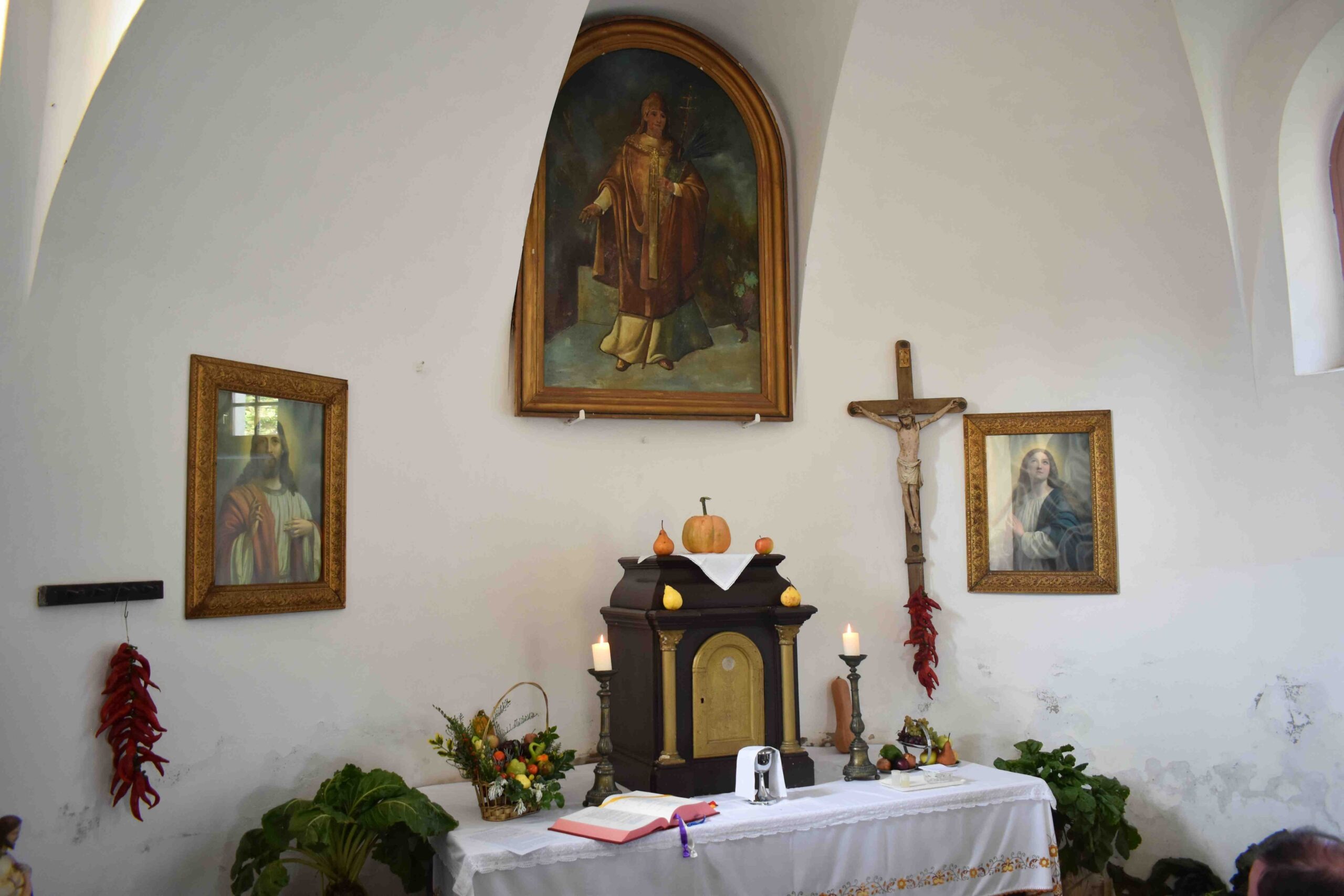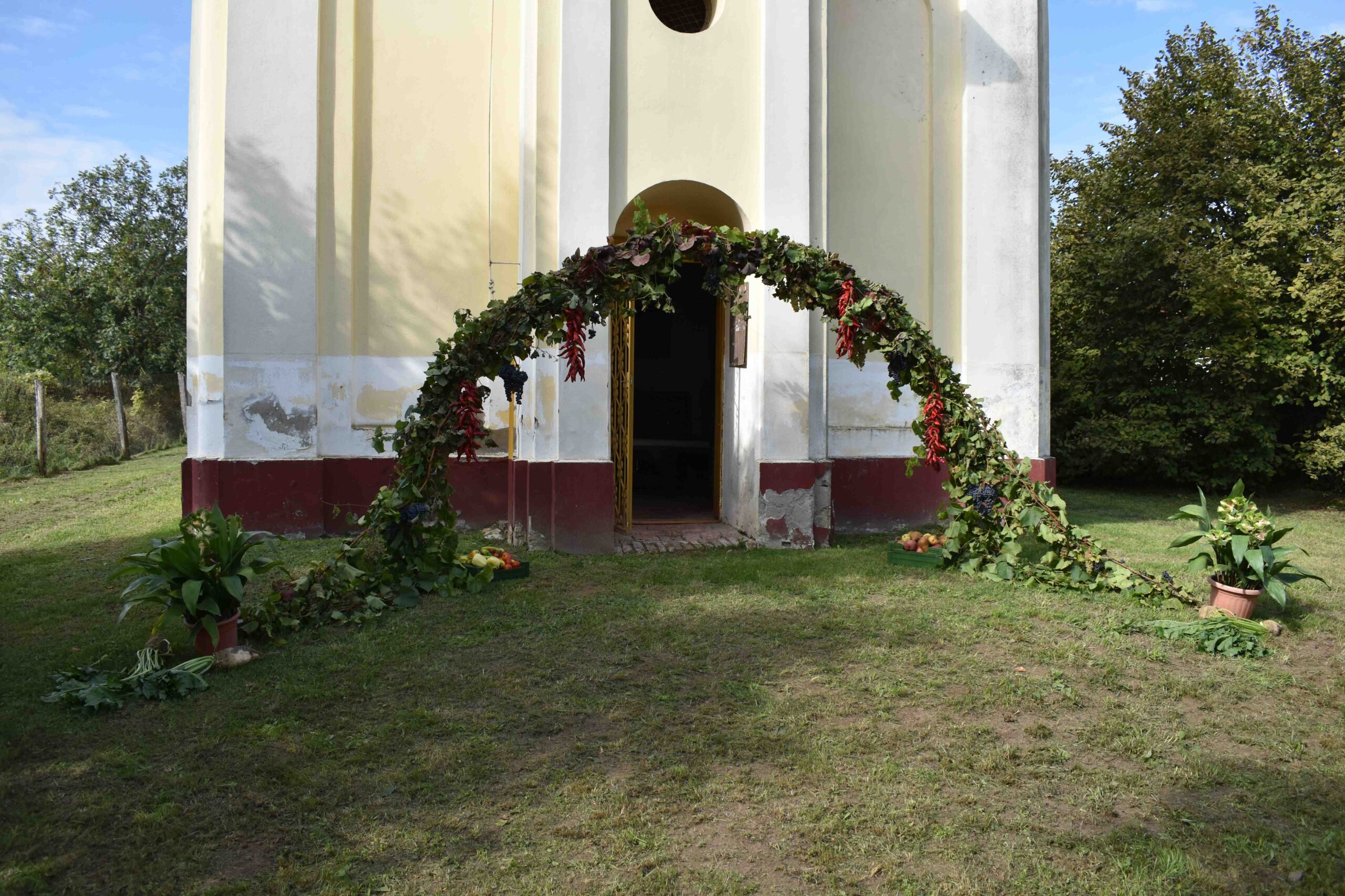 A Római Katolikus Egyházközség tagjai – a korábbi évek hagyományaihoz hasonlóan – a kápolna bejárata előtt félkörívben szőlőlugast készítettek, melyet zöldségekkel és gyümölcsökkel díszítettek fel, ugyancsak a templom belsejét is.