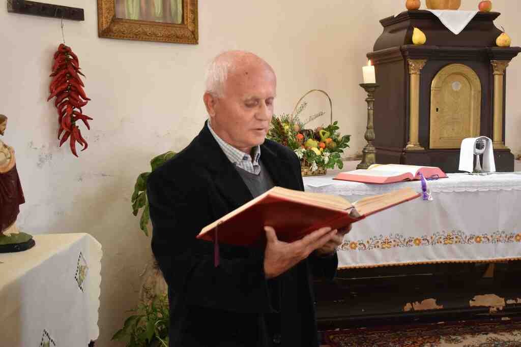 Az istentiszteletet Tomanek Ferenc Áron plébános celebrálta és a jelenlévő hívekkel együtt hálát adott Istennek az idei termésért. Énekkel közreműködött Balogh Bálint kántor.