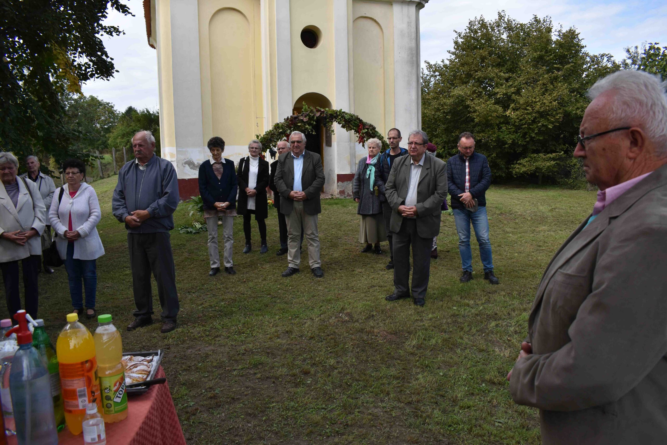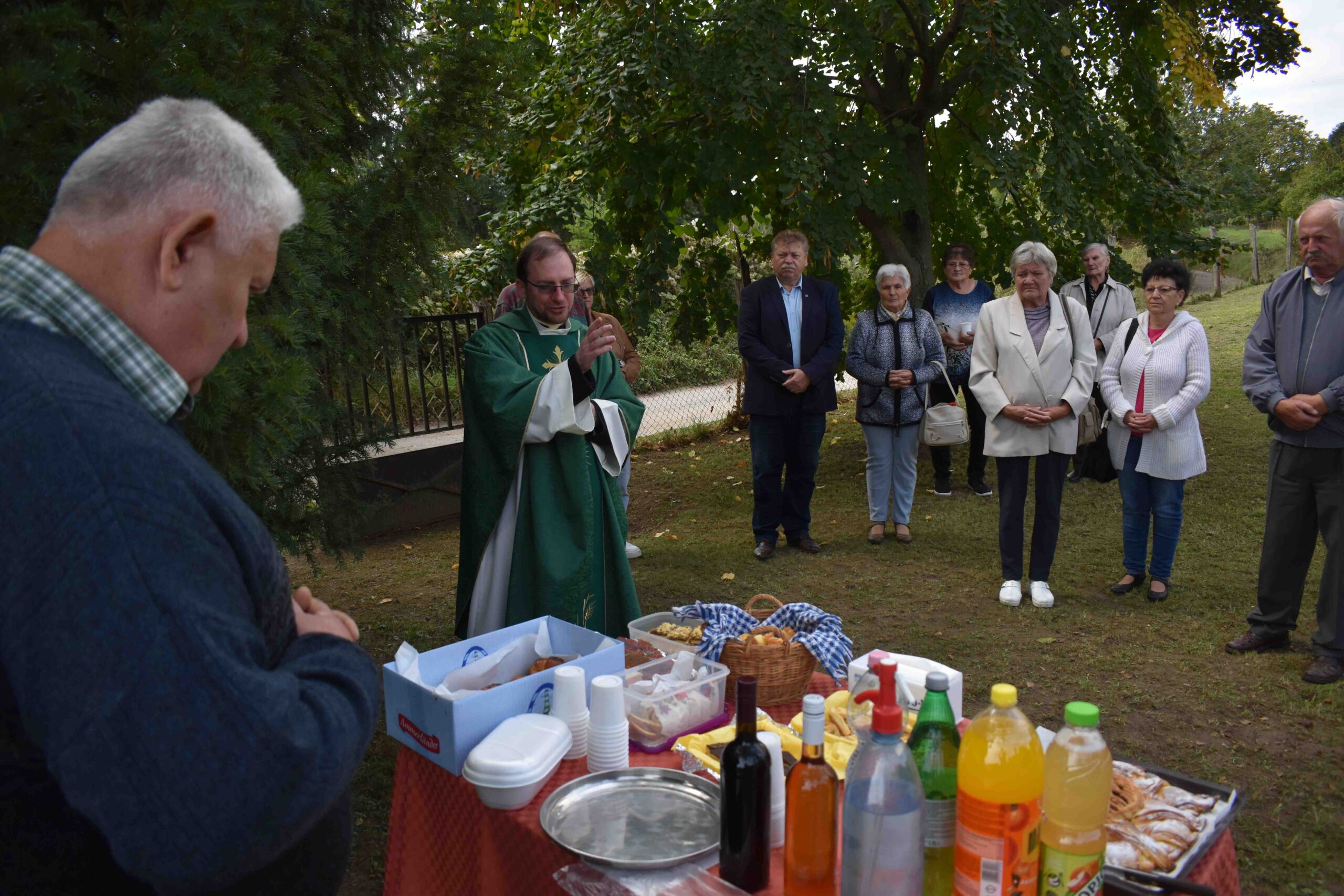 Végül a kápolna előtti udvaron, Tóth Péter közreműködésével süteményekkel, pogácsákkal, valamint frissítőkkel és borral is kínálták a jelenlévőket, melyeket a hívek készítettek el és hoztak az ünnepi alkalomra. Ferenc atya a szeretetvendégség (agapé) ételeit és italait ezt megelőzően áldásban részesítette. Az ünnepség kötetlen hangulatú beszélgetéssel zárult.