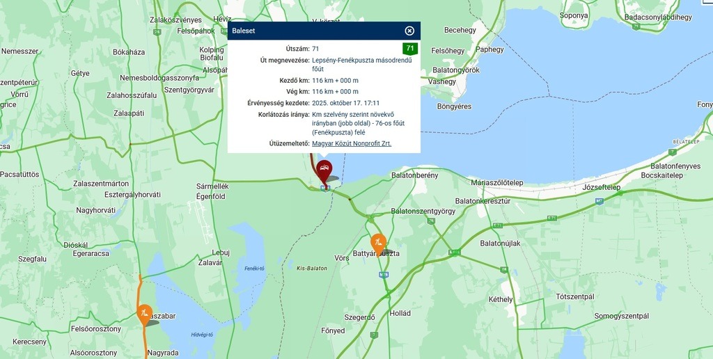 Baleset a 71-es főúton, több kilométeres a torlódás