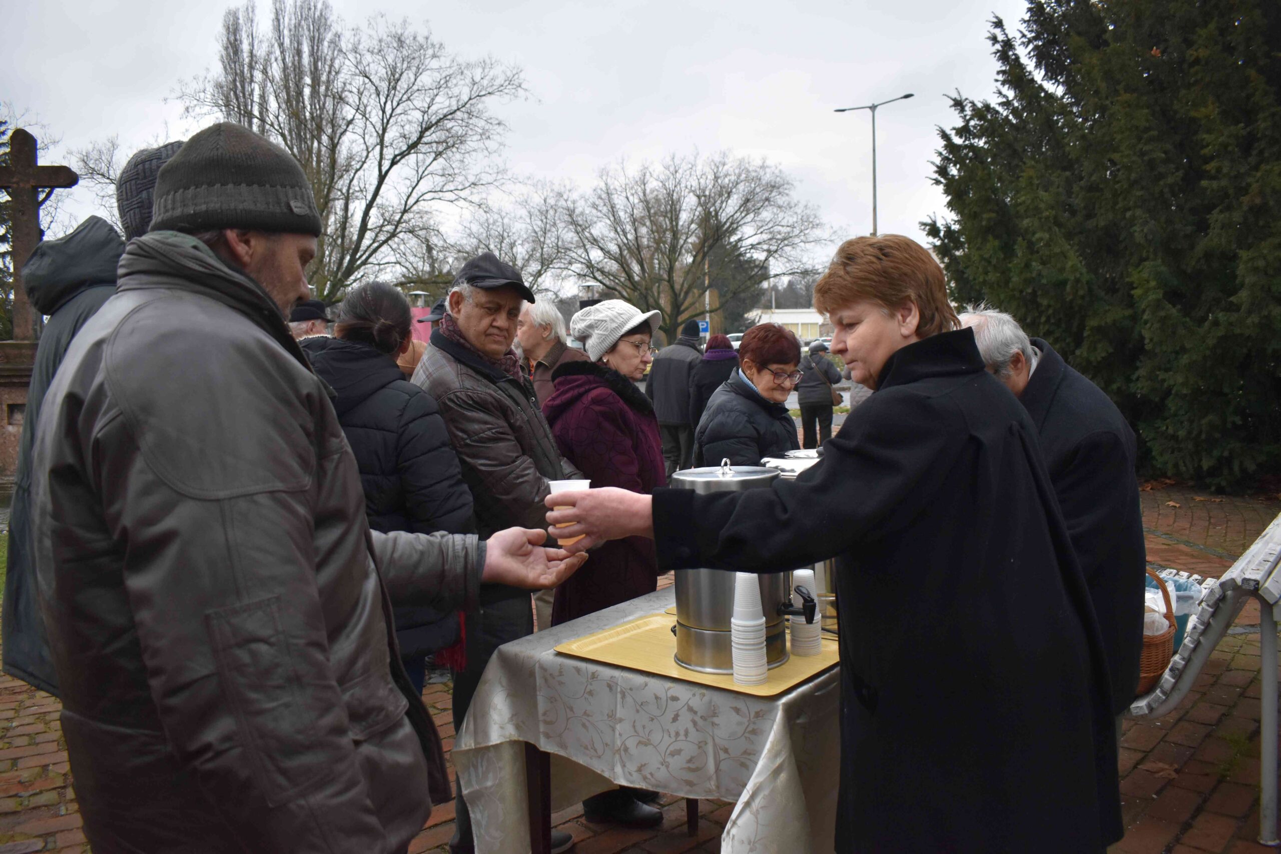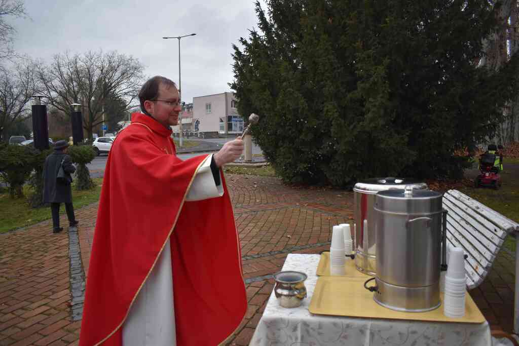 Végül a szentmise után Ferenc atya – hagyományosan – a forralt bort is megáldotta a templom előtt, melyet Gelencsér Róbert, egyházközségi testületi tag és családja készített; illetve kínált a jelenlévő híveknek, akik gyalog jöttek és nem vezetnek autót.