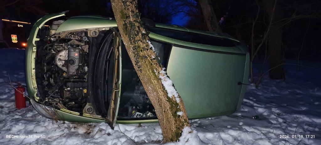 Megcsúszott az úttesten és az árokba csapódott egy személygépkocsi hétfő délután a 68-as főúton, Szenyérnél.