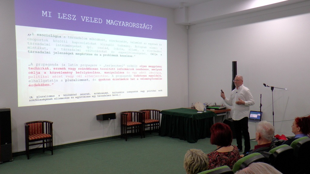 Érdeklődő közönség előtt zajlott le a Marcali az Otthonunk Egyesület legutóbbi rendezvénye a Kulturális Korzó mozitermében. A március 25-i esemény vendége Dr. Mészáros Géza szociológus, a hadtudományok doktora volt, aki aktuális társadalmi kérdésekről tartott előadást.