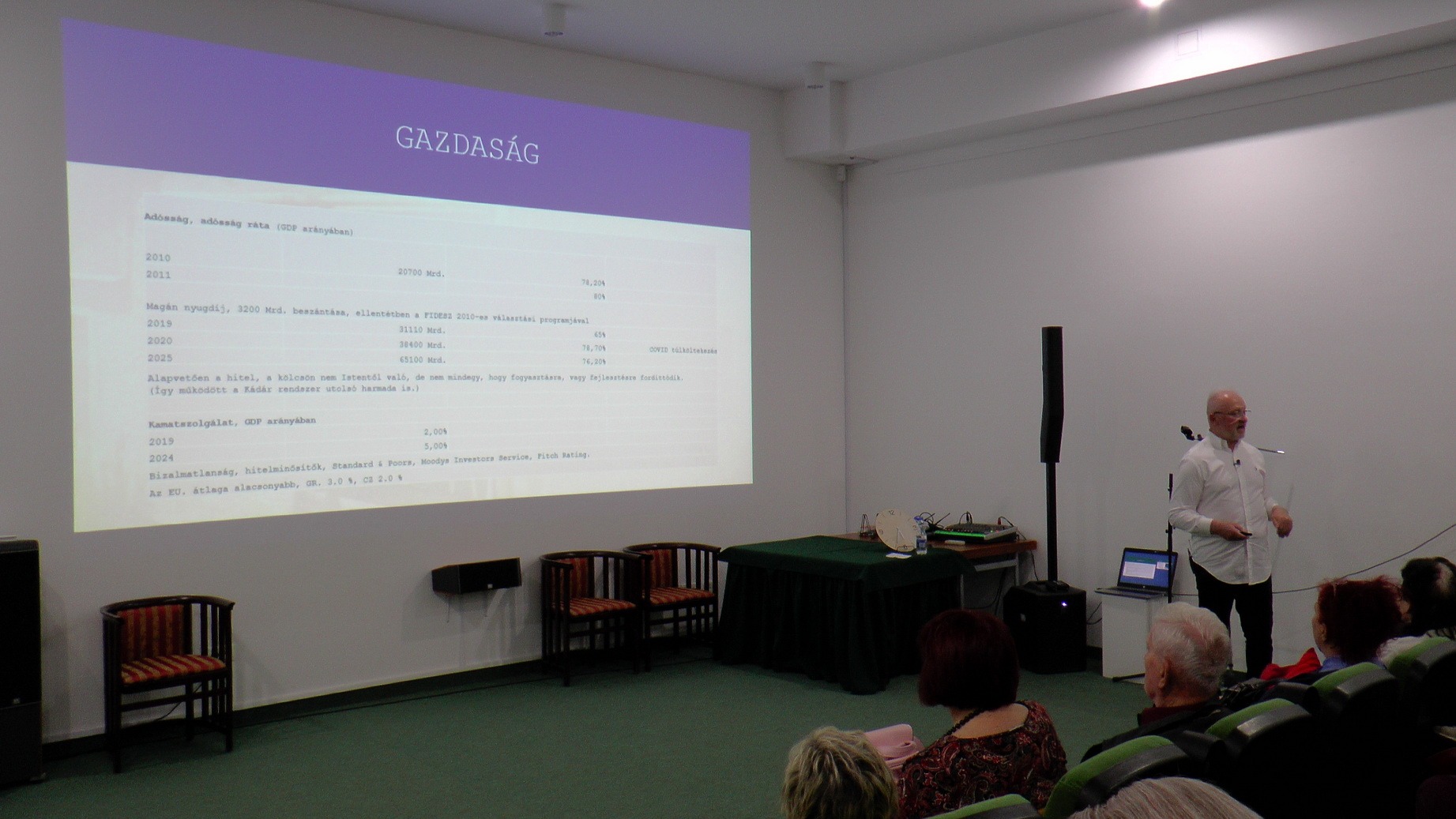 Érdeklődő közönség előtt zajlott le a Marcali az Otthonunk Egyesület legutóbbi rendezvénye a Kulturális Korzó mozitermében. A március 25-i esemény vendége Dr. Mészáros Géza szociológus, a hadtudományok doktora volt, aki aktuális társadalmi kérdésekről tartott előadást.
