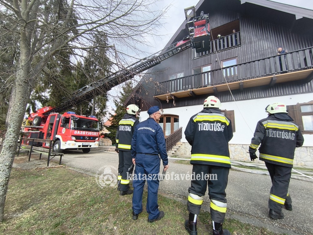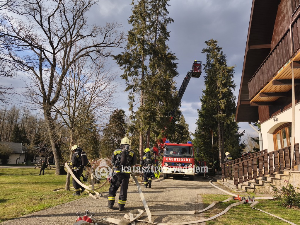Nagyatádról, Marcaliból, Kaposvárról, Nagykanizsáról és Csurgóról is érkeztek hivatásos és önkormányzati tűzoltók, hogy kimentsék a bajba jutottakat, majd megfékezzék a vadászházban „pusztító lángokat”. Teljes légzésvédelem mellett kutatták át a – vadászati élmények gazdagságáról árulkodó – épület füsttel teli helyiségeit. A helyismeretüknek köszönhetően az egységek a sűrű füst ellenére is gyorsan megtalálták a tájékozódó-képességüket vesztő alkalmazottakat és a sérült vendégeket. Az életmentést követően több oldalról támadva, magasból mentőt is bevetve sikerült a többi szobára is átterjedő tüzet megfékezni.