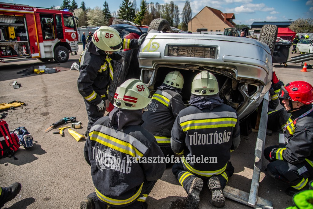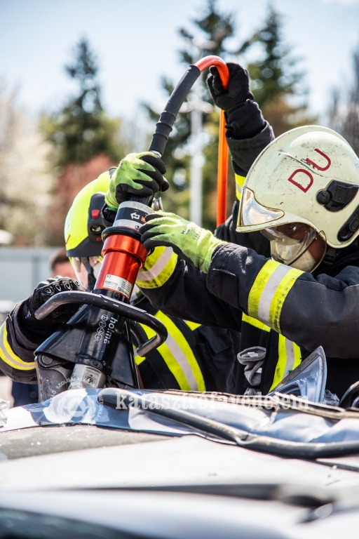 A bajnokságon résztvevő hivatásos tűzoltók a közlekedési balesetek során végzett műszaki mentési feladatok végrehajtásával kapcsolatos tudásukról és felkészültségükről adtak számot.