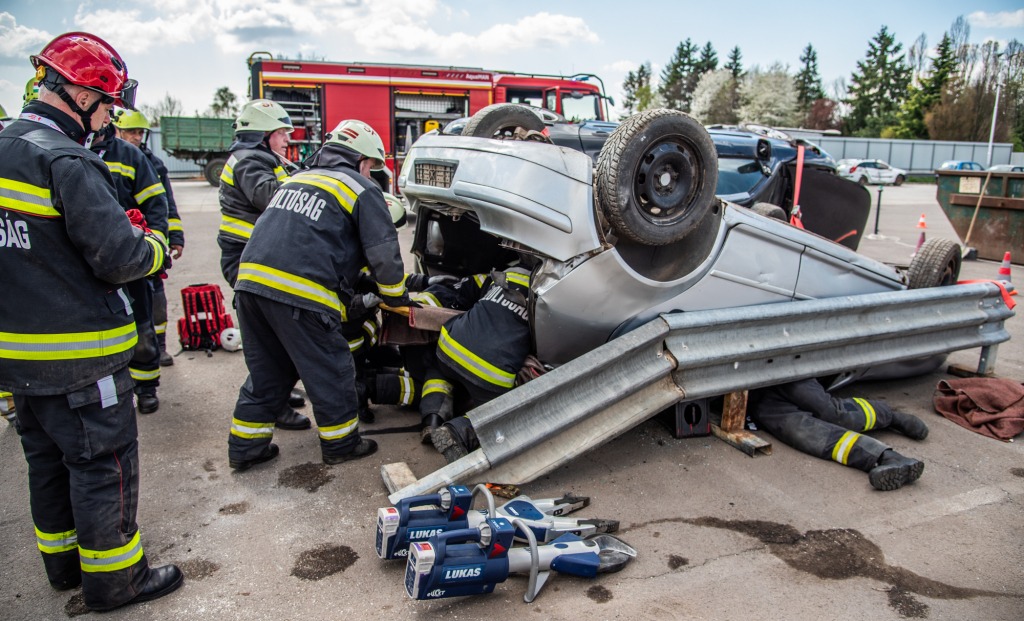 A bajnokságon résztvevő hivatásos tűzoltók a közlekedési balesetek során végzett műszaki mentési feladatok végrehajtásával kapcsolatos tudásukról és felkészültségükről adtak számot.