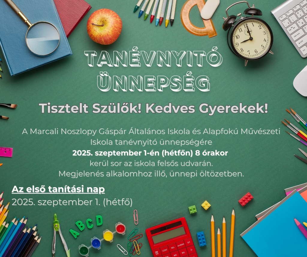 Tanévnyitó a Marcali Noszlopy Gáspár Általános Iskola és Alapfokú Művészeti Iskolában Calendar Hozzáadás a naptárhoz Add hozzá a Timely Calendar-hoz! Add a Google-hez! Add az Outlook-hoz! Add hozzá egy Apple naptárhoz! Add hozzá egy másik naptárhoz! Export to XML Mikor: 2025.09.01. hétfő @ 08:00 – 09:00 2025-09-01T08:00:00+02:00 2025-09-01T09:00:00+02:00